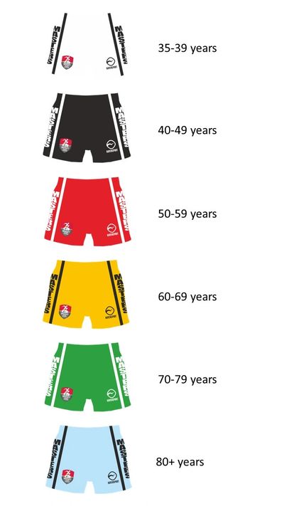 [1] ALL players must wear correct short colour for their age. Exceptions can be agreed where a player through medical need requires the protection of gold shorts. Exceptions to be agreed with referee prior to game. When an active player (35-59yrs) wears gold shorts as protection due to injury or for any other reason, they are not to wear tags and are tackled by touch only. In the Spirit of Masters, under age gold players may not move away from acting half back to tackle.